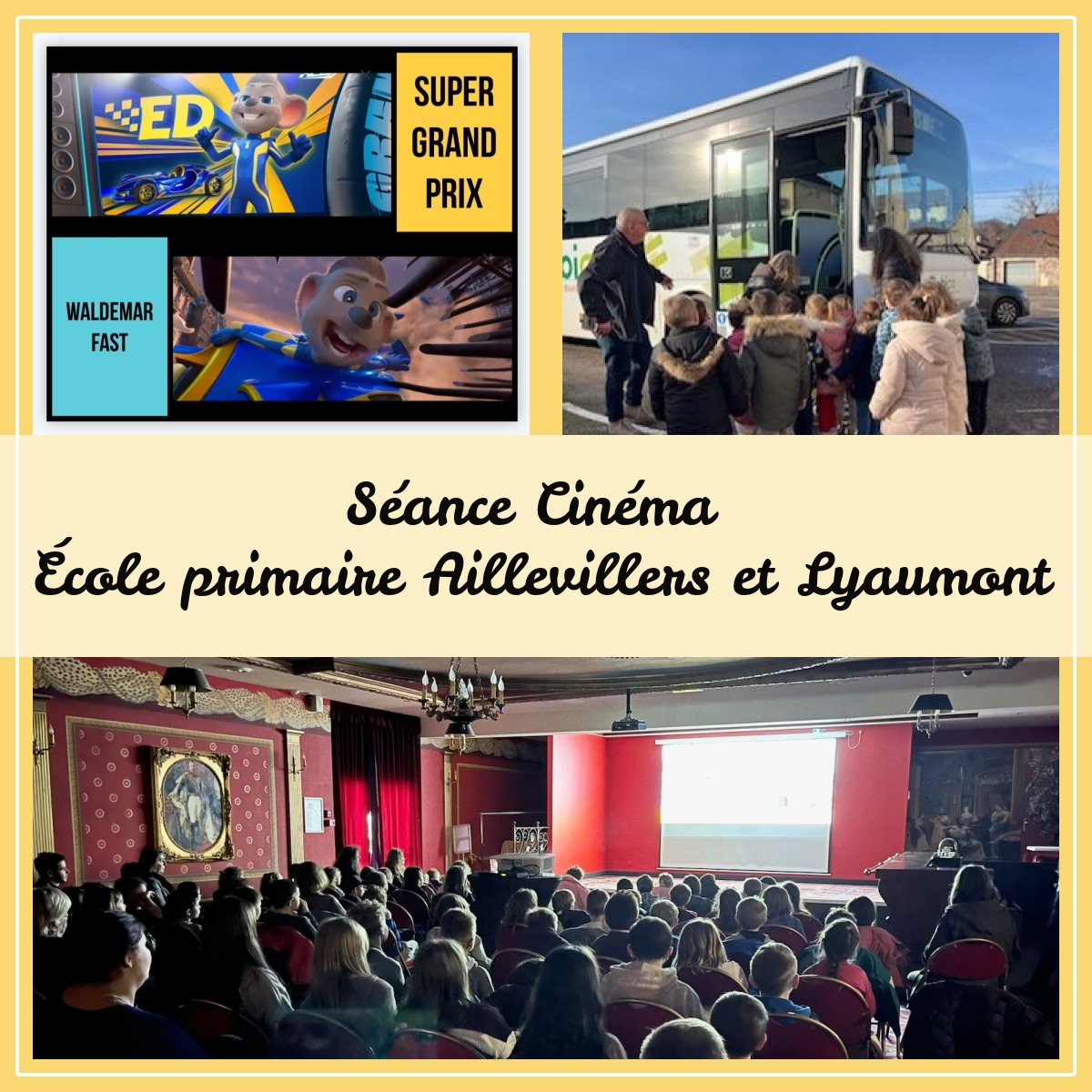 Cette année en remplacement du spectacle de Noël les élèves de l’école primaire ont assisté à une séance de Cinéma à Plombières Les Bains.