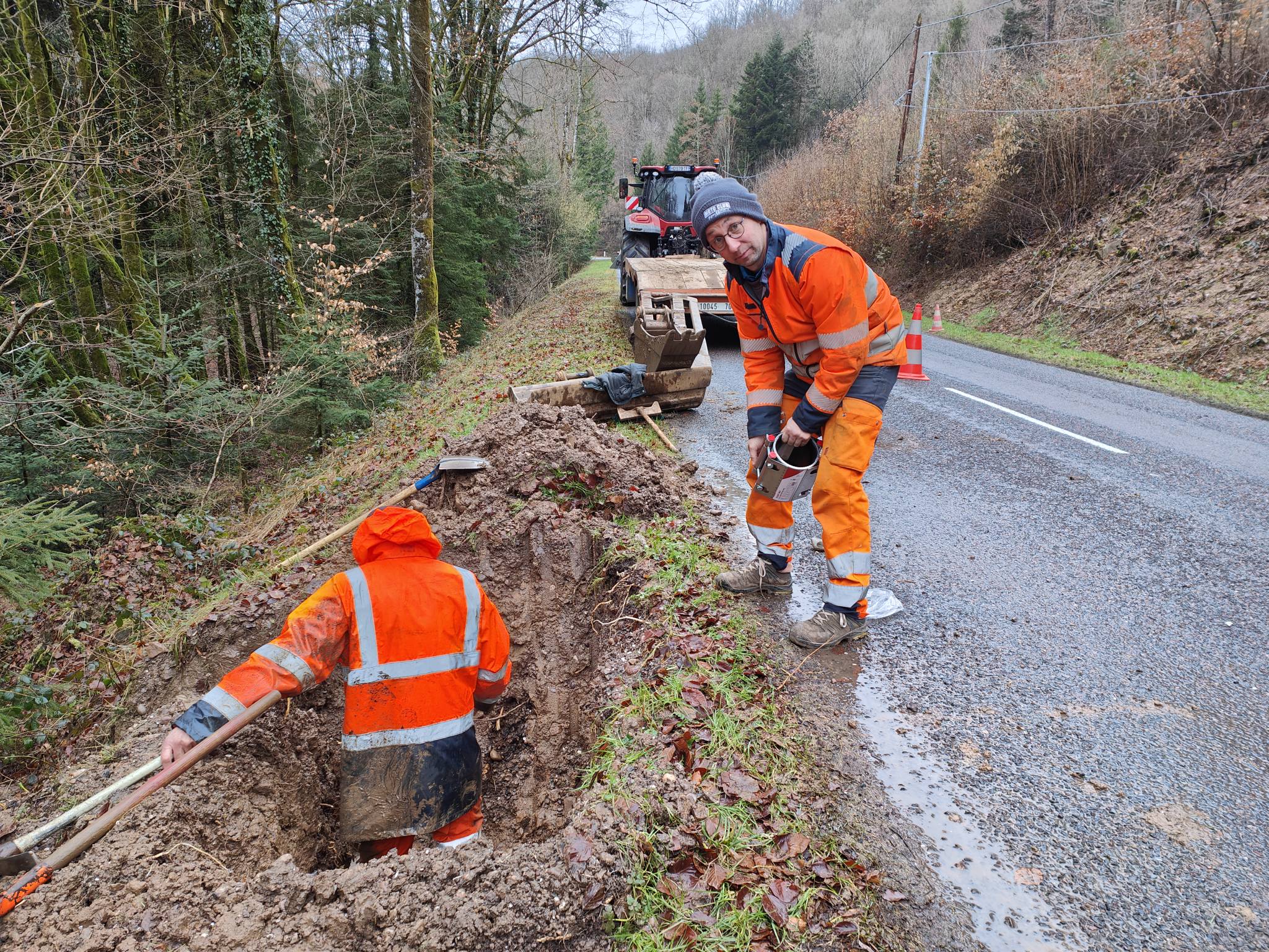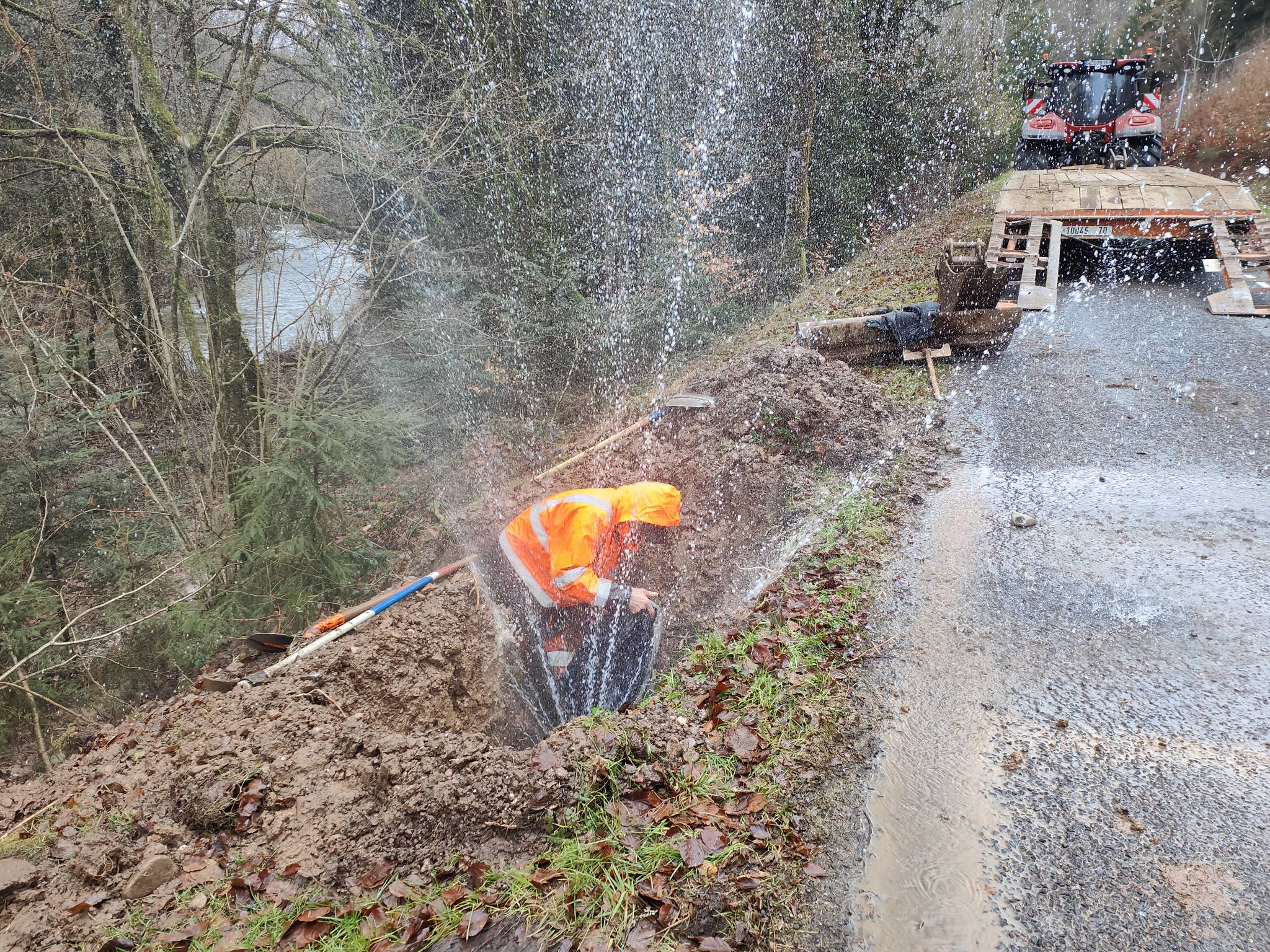 Fuite d’eau importante sur la conduite d’eau brute en provenance des sources du Poiremont et qui alimente la station route de Plombières.