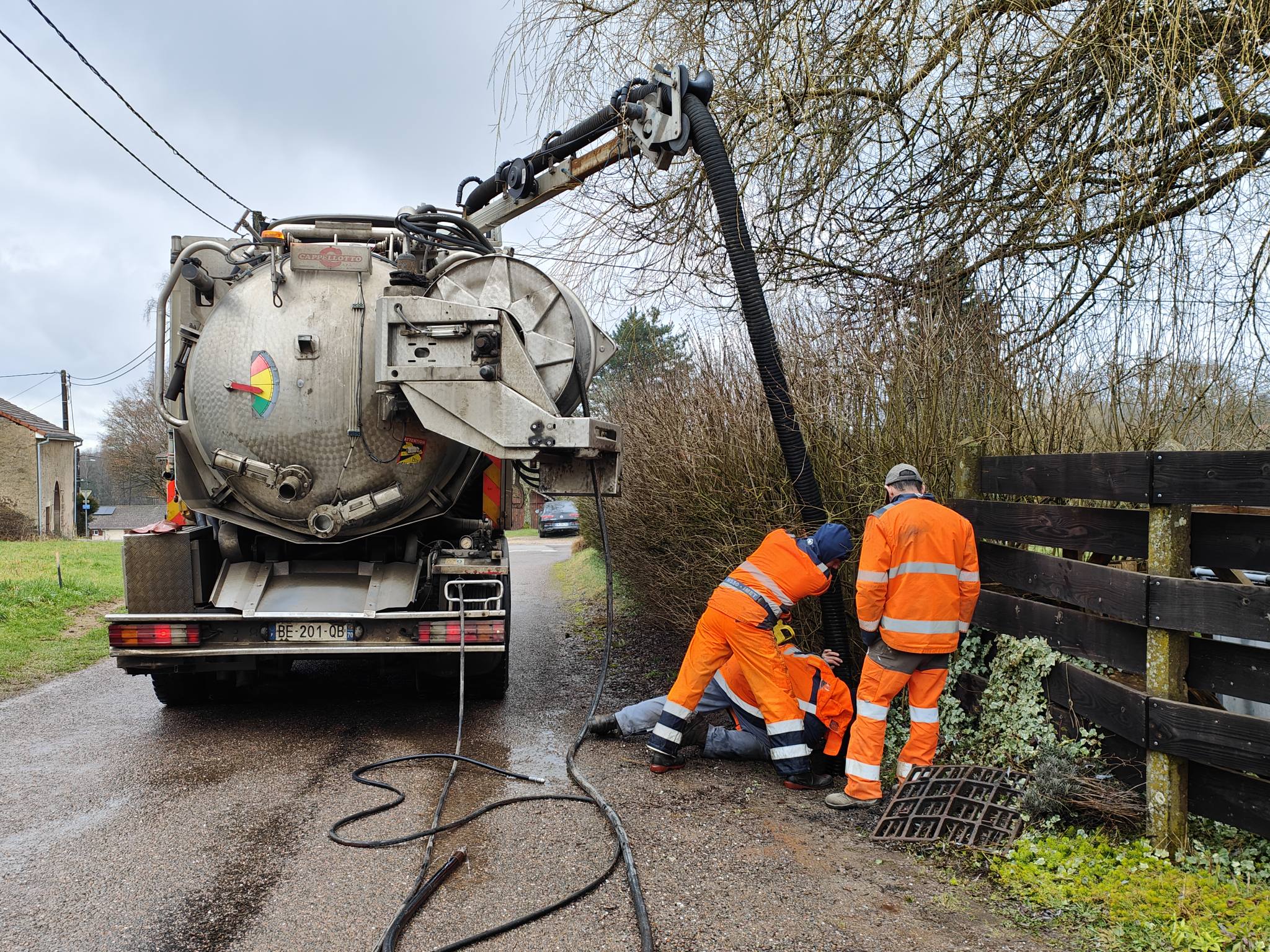 Opération d’hydrocurage au Lyaumont par l’entreprise Saône Vidange de Citers.